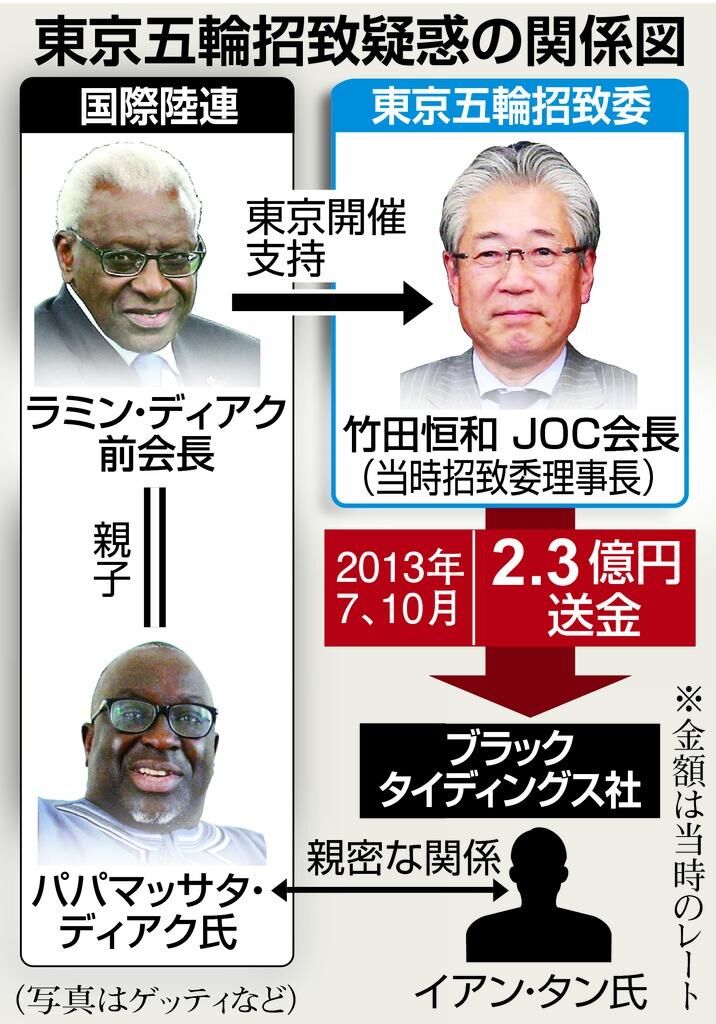 東京オリンピック(五輪)・パラリンピック招致をめぐる贈賄疑惑でフランス司法当局の捜査を受けている竹田恒和・元招致委員会理事長の弁護費用が2020年度までの3年間で約2億円に上り、その全額を竹田氏が19年6月まで会長を務めていた日本オリンピック委員会(JOC)が負担していることがわかった。JOCは19年3月の理事会で費用負担を決議しており、今年度以降も、捜査終結まで負担するという。