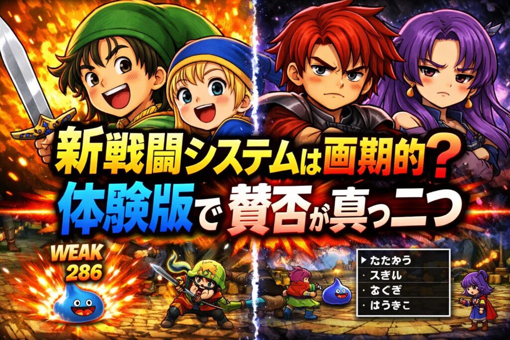 ドラクエ7リメイクの体験版で採用された新戦闘システムについて、「ターン制として画期的」「テンポが良い」と評価する声がある一方で、「既存作品でも見たことがある」「目新しさはない」といった否定的な意見も出ています。従来のターン制RPGと何が違うのか、プレイヤーの反応をまとめました。