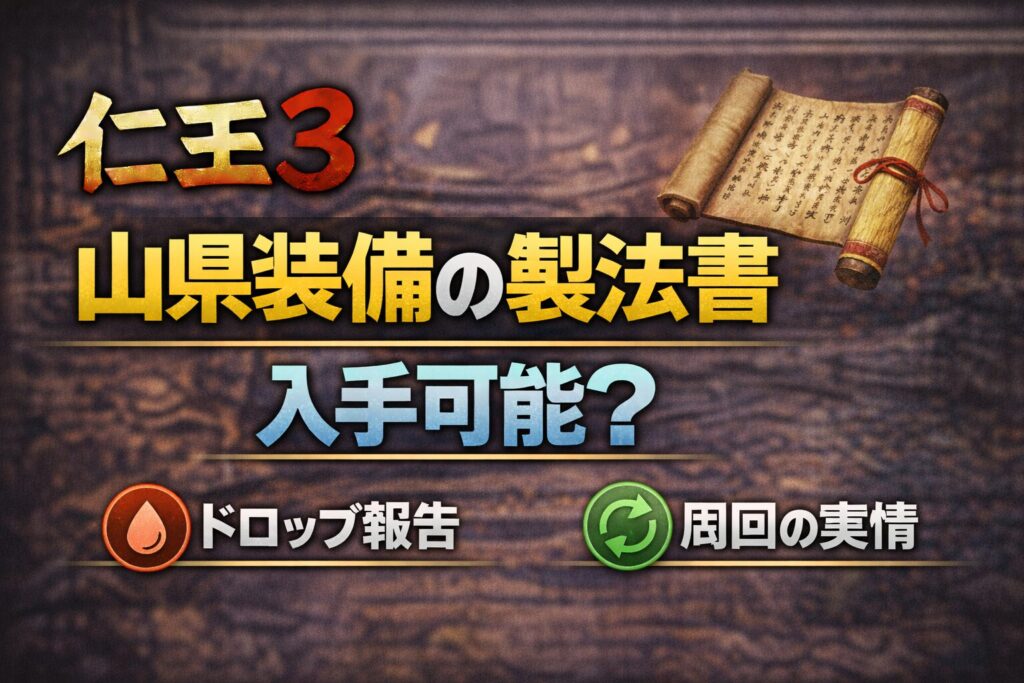 仁王3体験版に登場する山縣装備の製法書について、入手できるのか気になるという声が多く見られます。実際には防具や武器の製法書がドロップしたという報告が複数あり、周回前提の調整ではないかという意見も出ています。今回は体験版における山縣装備の製法書ドロップ状況や、プレイヤーの反応をまとめます。