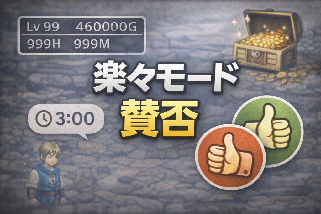 ドラクエ7リメイクでは、経験値や熟練度の取得量を大きく調整できる設定が用意されています。初心者向けの救済要素として評価する声がある一方で、「簡単すぎる」「達成感が薄れる」といった意見も見られました。楽々モードを巡るプレイヤーの反応を整理します。