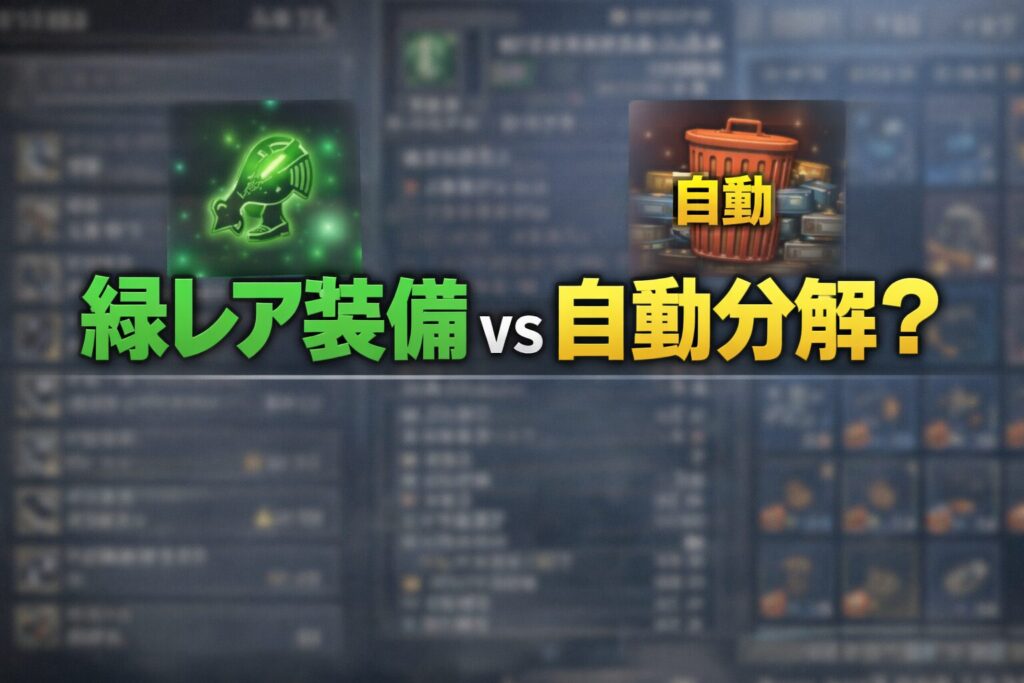 2周目突入後に緑レア装備が出始め、既存装備は不要になるのかという疑問が出ています。売却や分解の判断、神器まで駆け抜ける運用、塚からの170装備ドロップなど、装備更新の流れについて体験談が集まっています。