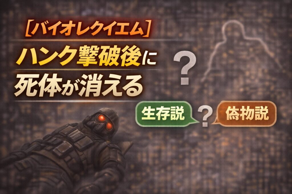 『バイオレクイエム』でレオンが倒した「ハンク?」について、戻ると死体が消える演出から生存説や偽物説が広がっています。声や言動、所属設定の食い違いも含めて反応を整理します。