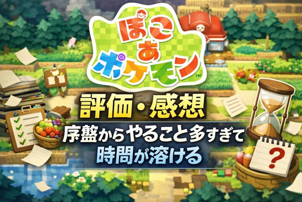 発売直後の『ぽこあポケモン』は、序盤から解放要素が多く「止め時が分からない」という声が目立ちます。ポケモンのリアクションや観察要素が高評価な一方、リアルタイム連動やイベント仕様には不満も出ています。