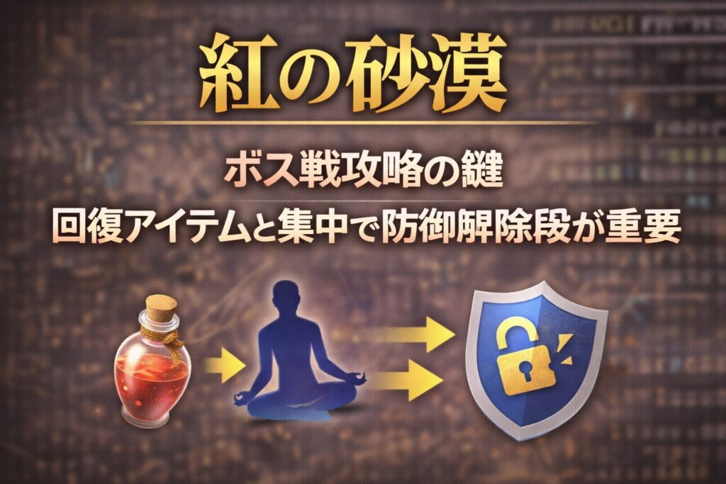 【紅の砂漠】ボス戦攻略の鍵 回復アイテムと集中で防御解除が重要