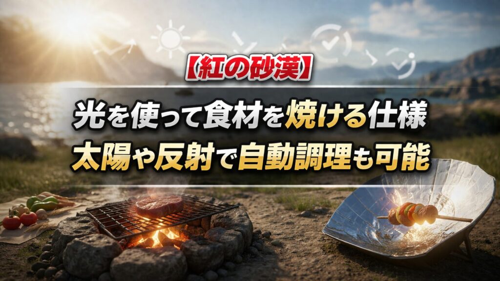 【紅の砂漠】光を使って食材を焼ける仕様 太陽や反射で自動調理も可能