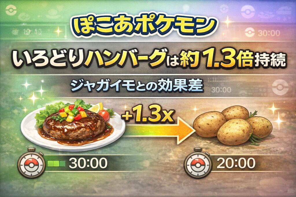 『ぽこあポケモン』でハンバーグ系料理の効果差が話題になっています。ジャガイモハンバーグといろどりハンバーグを比較した検証では、効果時間や破壊効率に明確な違いがあることが確認されており、採掘効率に影響する要素として注目されています。