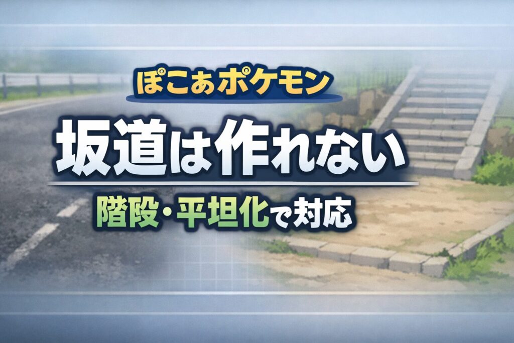 【ぽこあポケモン】アスファルトの坂道が作れない 斜面は階段や平坦化で対応する流れ