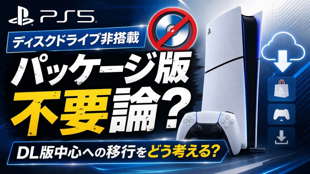 PS5のディスクドライブ非搭載モデルの普及やDL版の比率増加を背景に、パッケージ版は不要ではないかという意見が話題となっています。流通や小売コストの削減、メーカー利益の最大化といったメリットが指摘される一方で、パッケージ版の役割を重視する声もあり、さまざまな意見が集まっています。