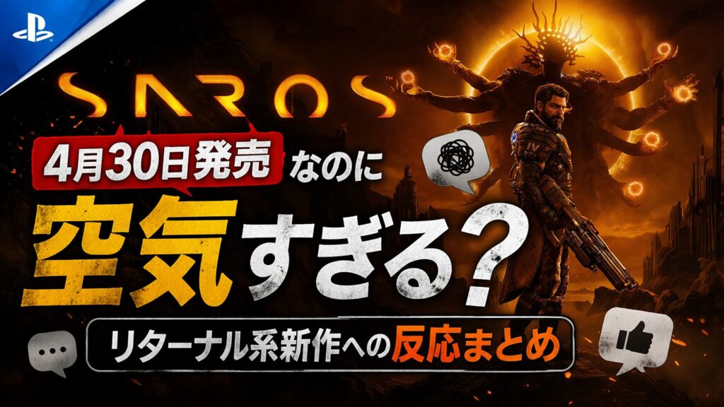 Housemarqueの新作『SAROS』は、PlayStation公式発表で2026年4月30日にPS5向け発売予定と案内されているものの、ネット上では「発売が近いのに話題が広がっていない」という反応が目立っています。宣伝の弱さやPS5独占、前作『Returnal』系の作風などを理由に、期待と不安の両方の声が集まっています。