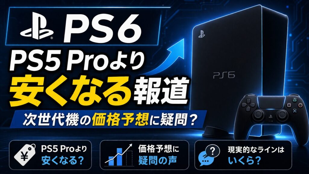 PS6のベースモデルがPS5 Proより安くなるという報道が出て話題になっています。報道元ではコストを抑えた設計が前提とされていますが、PS5 Proが日本で13万7980円に値上げされた直後でもあり、本当にそこまで抑えられるのか疑問視する声も広がっています。
