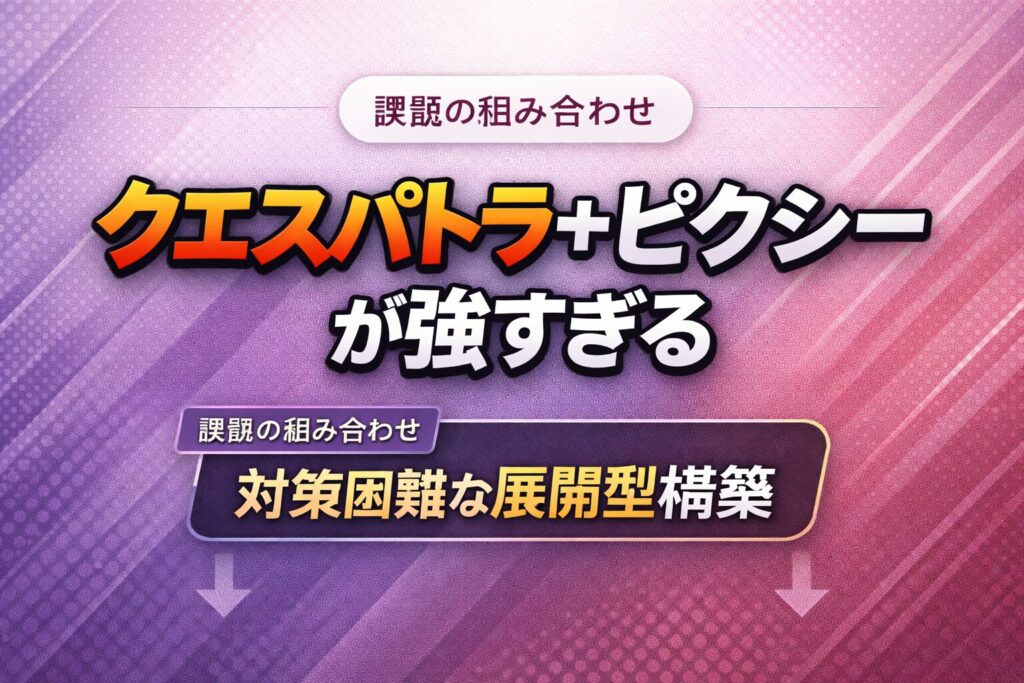 『ポケモンチャンピオンズ』でクエスパトラを軸としたバトン戦術や搦め手構築が注目されています。対策が薄い現環境では欠伸ループやバトン展開が通りやすく、特にピクシーと組み合わせた構築に苦戦する声も見られます。環境初期ならではの戦術的な偏りが議論されています。