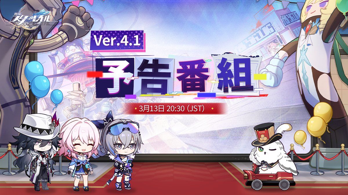 【崩壊スターレイル】Ver.4.1予告番組情報まとめ 2026年3月13日 最終更新日時 : 2026年3月13日 chappychan 【崩壊スターレイル】Ver.4.1予告番組情報まとめ 梨子「千歌ちゃんに全力で下ネタ曲を歌わせるわよ!!!!」曜「いええええぇぇぇぇぇぇぇい!!!!」 トランプいい加減にしろ スマホでゲーム ゴーゴーカレーおいしくない 朝ドラ「ばけばけ」髙石あかり→「風、薫る」見上愛、上坂樹里にバトンタッチ 「あんぱん」今田美桜を思い出し「重みがすごくて…」 東上線 仕事にいくのがつらいしねむいら、 マツコ「とんでもない家賃…」70畳リビングの豪邸に住む売れっ子「ベンツGクラス」ほか高級車を複数「今、作ってもらってる」全部フルカーボンの特注車も 有吉弘行、人生で初めて食べて衝撃だった料理「ビビったよ俺」「イカ墨!?みたいな」 イラン情勢によりガソリン価格が大幅な値上がり 重油も高騰で遠洋漁業にも影響 【崩壊スターレイル】Ver.4.1予告番組情報まとめ 続きを読む 続きを見る 【崩壊スターレイル】Ver.4.1予告番組情報まとめ 梨子「千歌ちゃんに全力で下ネタ曲を歌わせるわよ!!!!」曜「いええええぇぇぇぇぇぇぇい!!!!」 トランプいい加減にしろ スマホでゲーム ゴーゴーカレーおいしくない 朝ドラ「ばけばけ」髙石あかり→「風、薫る」見上愛、上坂樹里にバトンタッチ 「あんぱん」今田美桜を思い出し「重みがすごくて…」 東上線 仕事にいくのがつらいしねむいら、 マツコ「とんでもない家賃…」70畳リビングの豪邸に住む売れっ子「ベンツGクラス」ほか高級車を複数「今、作ってもらってる」全部フルカーボンの特注車も 関連記事 朝ドラ「ばけばけ」髙石あかり→「風、薫る」見上愛、上坂樹里にバトンタッチ 「あんぱん」今田美桜を思い出し「重みがすごくて…」 東上線 仕事にいくのがつらいしねむいら、 梨子「千歌ちゃんに全力で下ネタ曲を歌わせるわよ!!!!」曜「いええええぇぇぇぇぇぇぇい!!!!」 「妖精さんみたい」パリでのスラリ脚が沸騰の今田美桜以外にも…ヒット朝ドラ『あんぱん』俳優が引く手数多